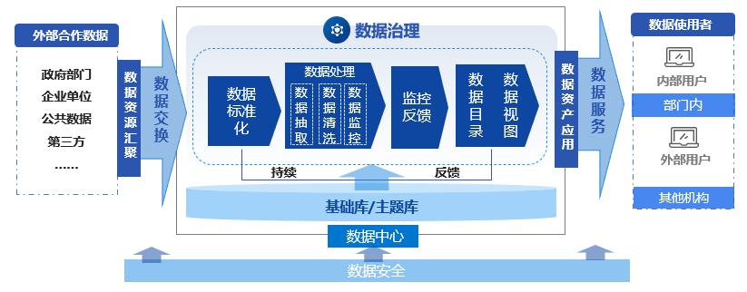以“标准、治理、开发、共享”为核心理念,使大数据处理及应用过程标准化、流程化、组件化,提高效率。以“数据管理”、“数据共享与开发”、“数据服务”、“数据安全”为切入点,提供快速、自动、稳定的数据治理和管控。保证数据的信息资源标准统一、数据安全共享开放、提升数据利用和业务创新的需求。